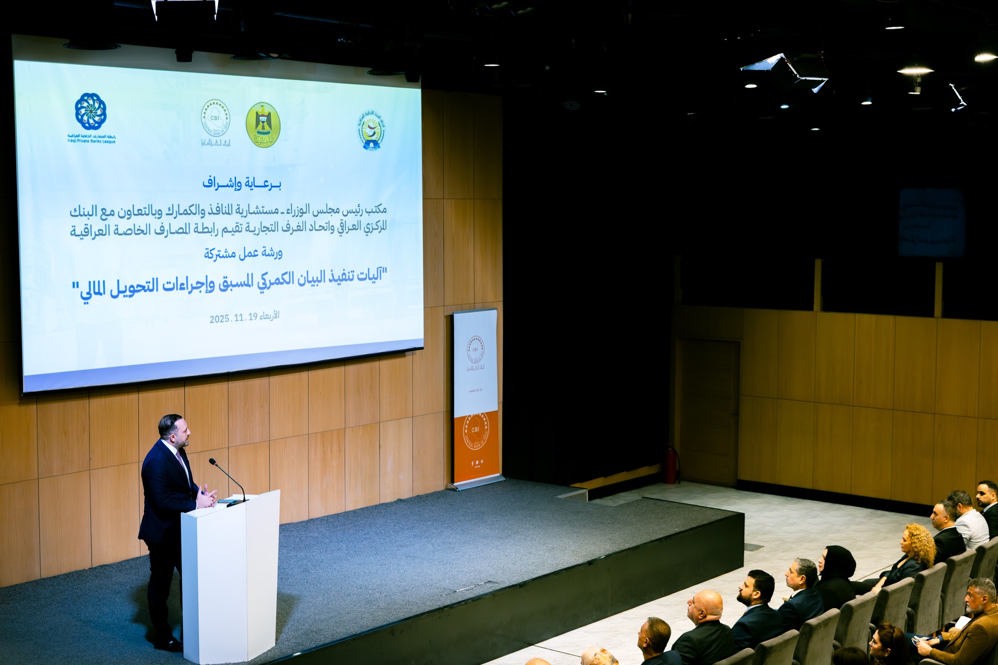 برعاية وإشراف مكتب رئيس مجلس الوزراء ومستشارية المنافذ والكمارك، وبالتعاون مع البنك المركزي العراقي واتحاد الغرف التجارية، نظّمت رابطة المصارف الخاصة العراقية ورشة عمل متخصصة بعنوان “آليات تنفيذ البيان الكمركي المسبق وإجراءات التحويل المالي”. وتهدف هذه الورشة إلى تعزيز التنسيق بين المؤسسات الحكومية والقطاعين المصرفي والتجاري، وشرح آليات تطبيق نظام البيان الكمركي المسبق ومتطلبات التحويلات المالية المرتبطة به.